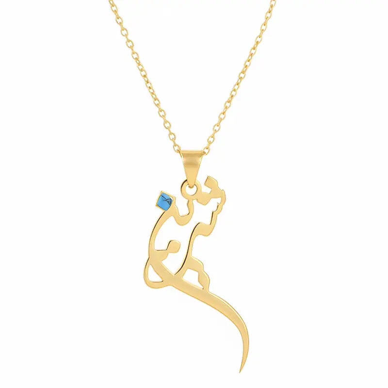 Make a bold statement with the Custom Persian Name Necklace with Turquoise Charm. This unique piece combines the beauty of Persian gold necklaces with the personalization of your name in Persian calligraphy. Crafted by skilled artisans at Persis Collection, this custom jewelry piece features a stunning turquoise charm, adding a vibrant touch to your necklace. Whether you choose a Persian gold necklace, sterling silver, or brass, this piece is designed to be both meaningful and elegant, reflecting the rich cultural heritage of Persian craftsmanship. With the option to select from three different chain lengths (40cm, 45cm, 50cm), you can personalize it to suit your style.