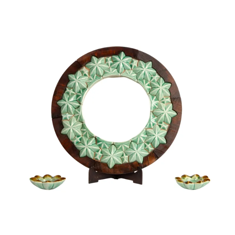 Elegant Emerald Ceramic Mirror and Candle Set