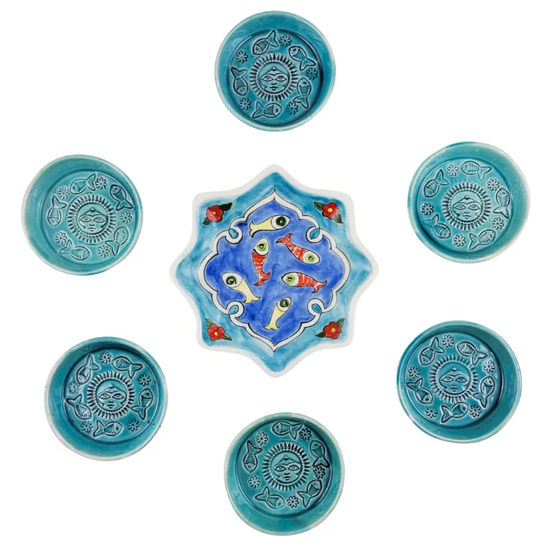 The haft sin set is handmade and made of ceramic and is inspired by Fish & Sun.