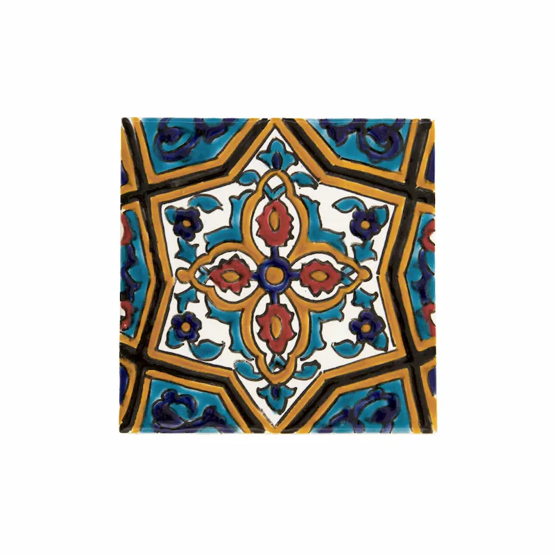 Available in 10x10cm and 20x20cm sizes, these Persian tiles blend tradition and modern style, offering visual depth and cultural richness. Their earthy terracotta base and vibrant enamel colors evoke the charm of historical Persian architecture while offering durability for everyday spaces.