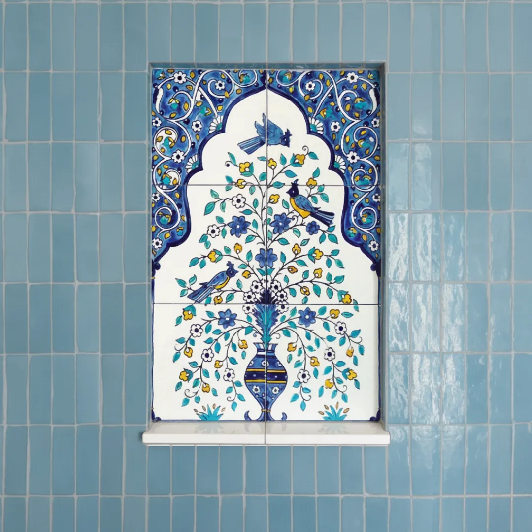 Each of our Handcrafted Persian Tiles is created by skilled artisans. This ensures that every piece reflects the fine craftsmanship that Persian tiles are known for. The Majlis arch design is an iconic feature of traditional Persian tile art. It adds elegance and historical depth to your home. These tiles are made from high-quality ceramic. They provide durability and beauty, lasting for generations. With their authentic design and exceptional quality, these Persian Ceramic Tiles are more than just décor. They represent a piece of Persian culture brought to life.