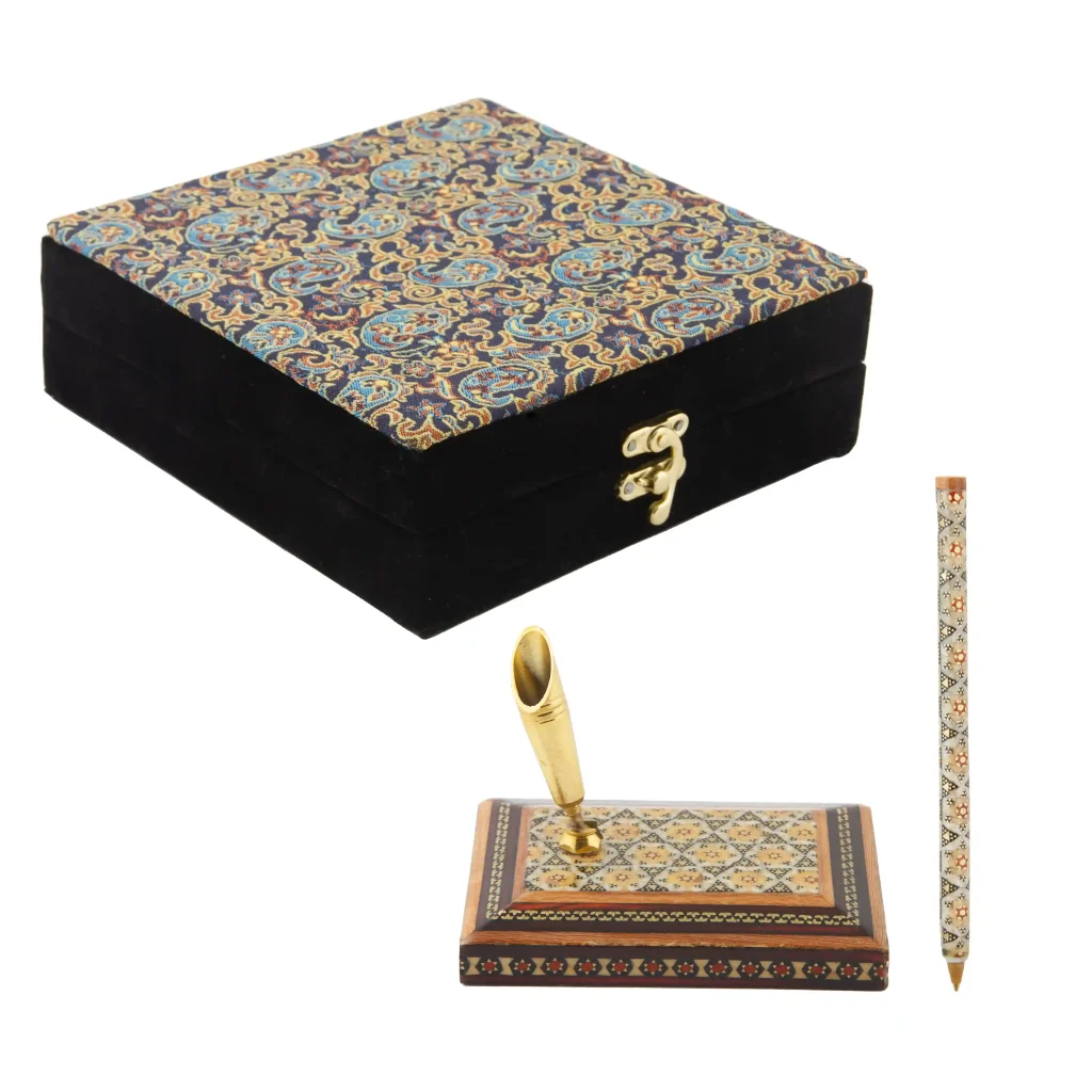 Khatam Kari Gift Set Pen and Holder Termeh Box