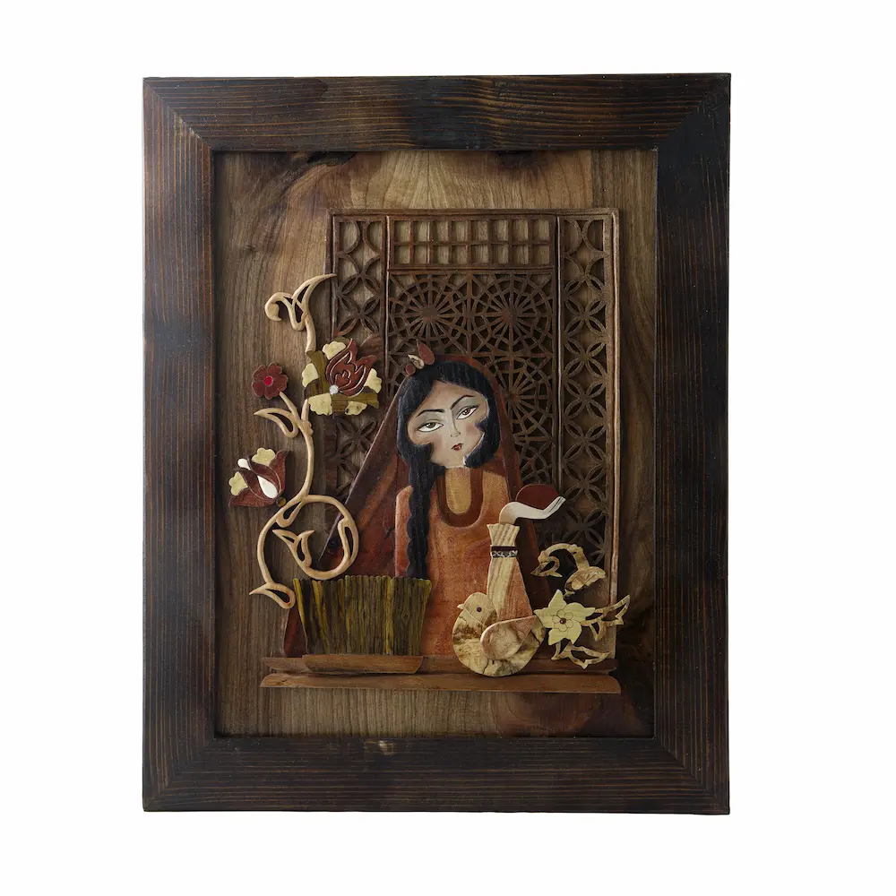The Khatoun Elegance Persian Wall Art – Artisan Walnut Wood Moarragh Wall Decor is a handcrafted Persian tableau that embodies the grace of traditional Persian artistry. Carefully created using the intricate Moarragh technique and premium walnut wood, this Persian Wooden tableau reflects centuries of craftsmanship blended with refined contemporary design. The rich walnut tones enhance the painted “Khatoun” motif, celebrating feminine beauty and cultural heritage in a form that feels both authentic and sophisticated.