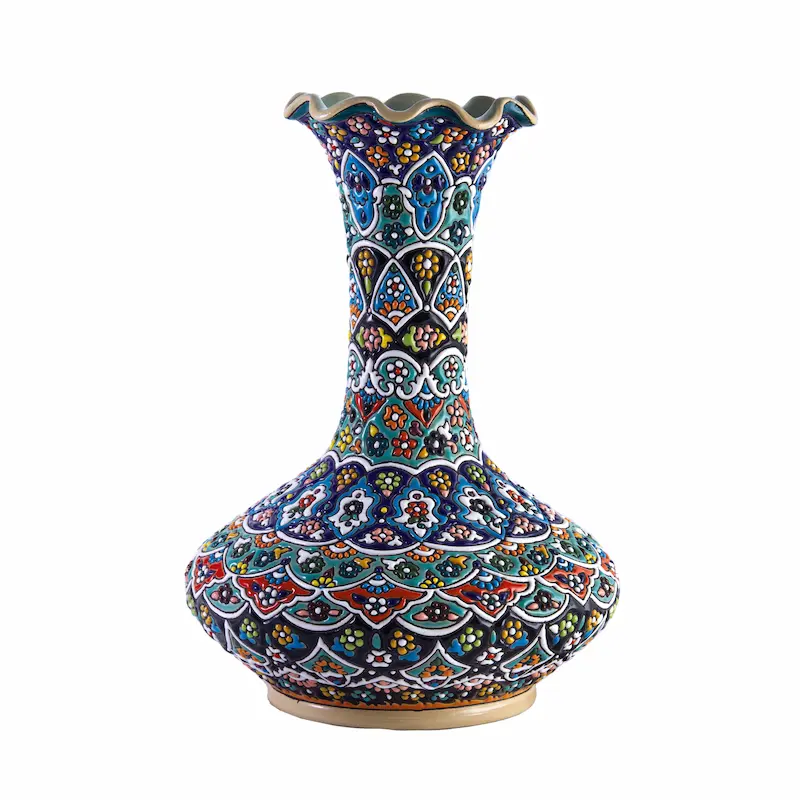 The artwork you are purchasing is called Mina with a rich old history of around 5000 years. Mina means blue in ancient Persian language and the blue colour in this artwork is a symbol of heaven’s sky. Although blue is the traditional colour in this art, however, the contemporary Mina handcrafts could be found in a variety of colours these days such as green, grey, pink and etc.