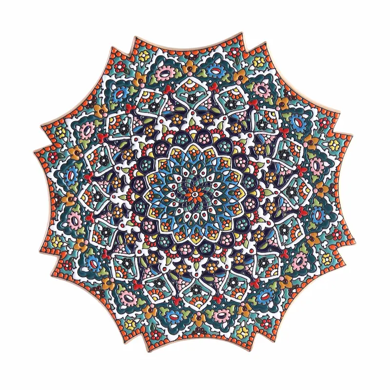 The artwork you are purchasing is called Mina with a rich old history of around 5000 years. Mina means blue in ancient Persian language and the blue colour in this artwork is a symbol of heaven’s sky. Although blue is the traditional colour in this art, however, the contemporary Mina handcrafts could be found in a variety of colours these days such as green, grey, pink and etc.