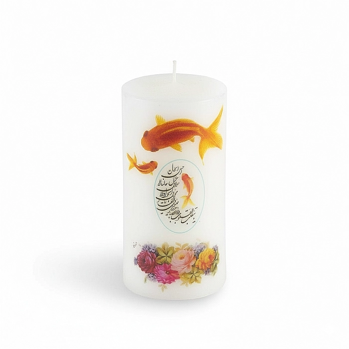 Illuminate your Persian New Year celebration with the Nowruz Prayer Pillar Candle, a beautifully crafted symbolic piece for your Haft sin table. This candle honors the essence of Nowruz with a delicate prayer inscription and showcases goldfish motifs that symbolize life and blessings. At 15cm high, it makes a perfect centerpiece for your Haft sin Accessories, blending Persian art with traditional meaning.