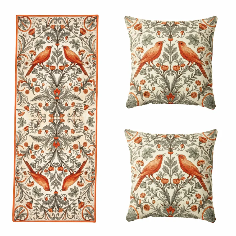 Each piece in the set is meticulously crafted with attention to detail. The Persian cushions feature double-sided covers, ensuring durability and a beautiful design that will stand the test of time. The cushions measure 40×40 cm, making them perfect for various uses. The runner, at 90×35 cm, is ideal for a dining table or hallway. The print is clean, sharp, and precisely executed, giving the Persian cushions and runner a sophisticated, timeless look. This set is crafted with quality and designed to beautify your space and stand the test of time. It maintains its luxurious appearance, even with frequent use.