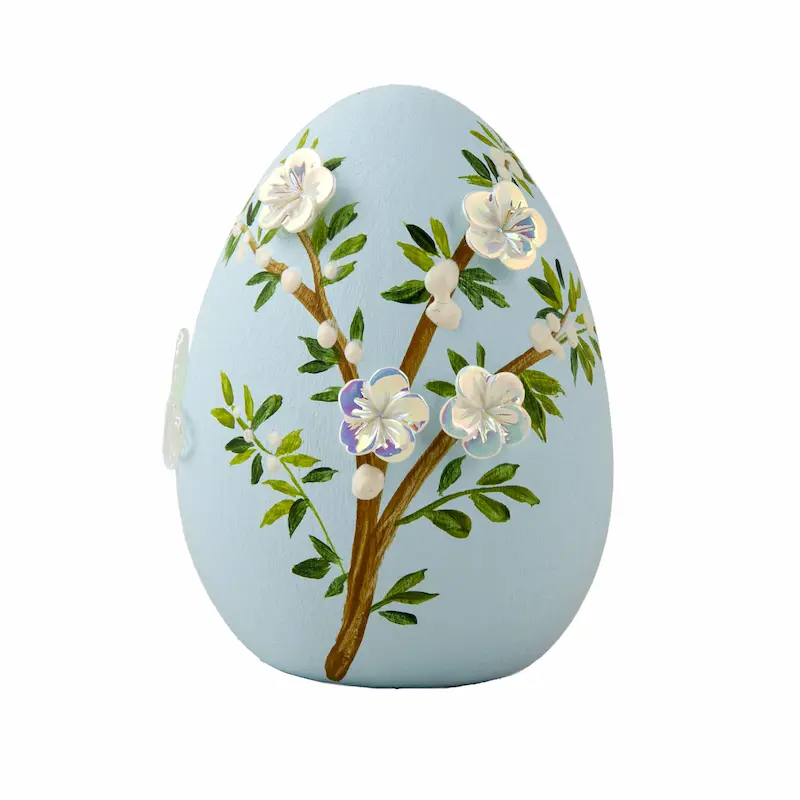 Each turquoise haft seen egg is individually painted, showcasing rich cultural artistry. The gentle blue base evokes spiritual clarity, while the embossed flowers and butterflies are carefully shaped and affixed by hand. This makes each egg unique—just like the stories told around every Nowruz gathering.