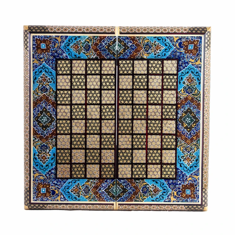 Created by a skilled artisan from Persian Heritage, this gameboard is a testament to their craftsmanship, using only the finest materials. The set includes luxurious Khatam Kari chips and is elegantly presented in a leather briefcase, adding a touch of sophistication to your gaming experience.