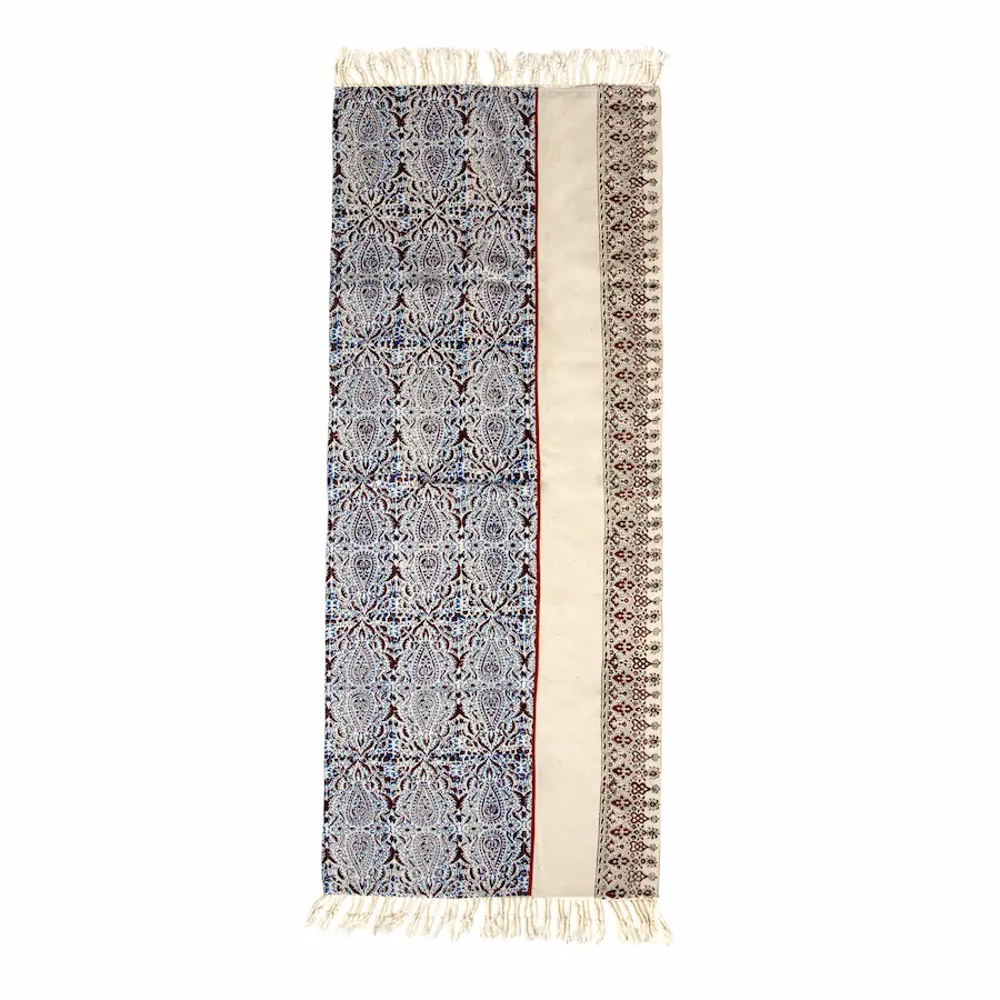 Celebrate centuries of artistry with this handcrafted Persian Table Runner, a piece that transcends decoration and enters the realm of storytelling. Designed using traditional block printing (Qalamkar) techniques and adorned with the symbolic Boteh Jegheh motif, this elegant runner evokes a sense of Persian cultural richness. One side features lush silk Termeh—a luxurious fabric synonymous with Persian heritage—while the other is lined with durable fabric for practicality and longevity. Offered by Persis Collection, this work of art brings authenticity and grace to your space, becoming a centerpiece for gatherings and admiration alike.