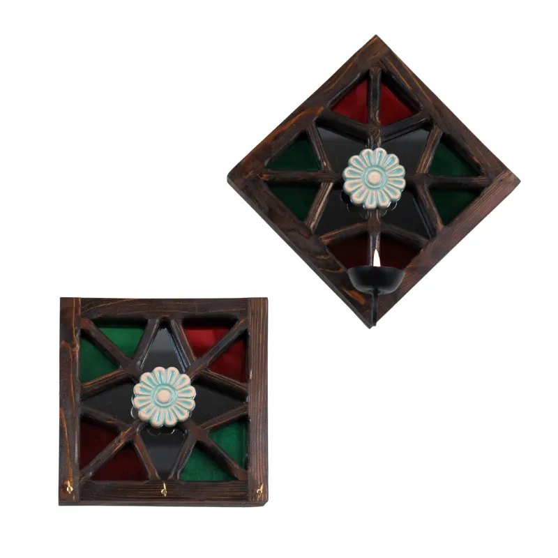 wooden candle holder / key holder inspired by Persian window. handmade tiles.