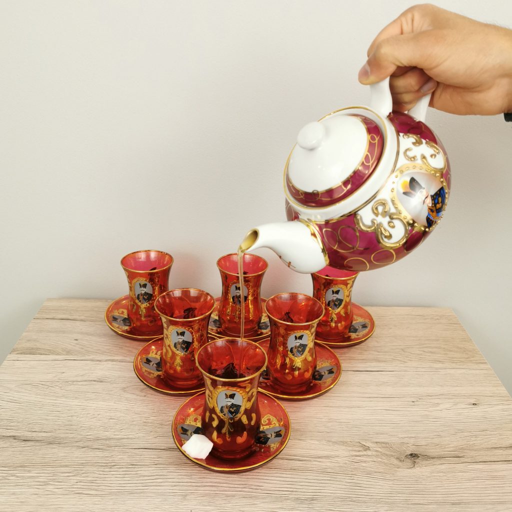 A Shah Abbas teacup and saucer set is a collection of ceramic tableware, consisting of a teacup and a matching saucer. “Shah Abbas” refers to Shah Abbas the Great, who was the fifth Safavid King of Persian and ruled from 1588 to 1629. During his reign, Persia experienced a cultural and artistic revival, and Shah Abbas was known for his love of the arts and his patronage of artists. This type of teacup and saucer set is often decorated with designs inspired by Persian art and architecture from the reign of Shah Abbas, and is meant to evoke the beauty and luxury of this period. These teacups and saucers are typically used for serving tea or other hot beverages, and are often used for special occasions or as a decorative item in the home.