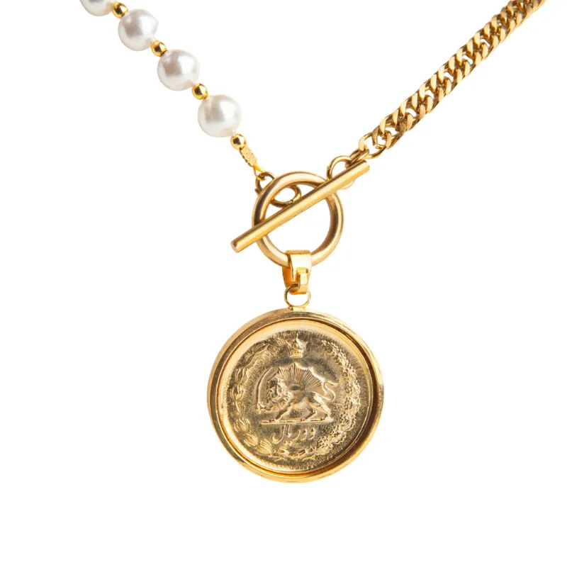 The Shir o Khorshid emblem, long revered as a symbol of power and light in Persian history, serves as the focal point of this necklace. Wearing this accessory connects you to a rich legacy, offering more than style—it brings meaning, emotion, and pride to your look. It’s a tribute to Persian splendour, captured in a design that’s both timeless and empowering.