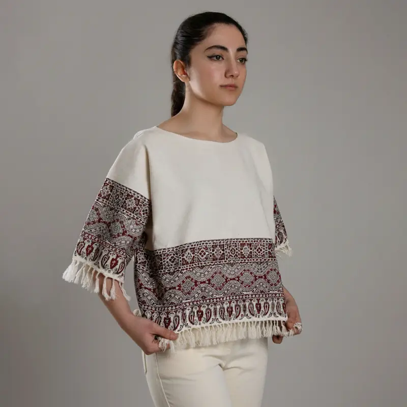 This blouse is designed for versatility. It combines the best of traditional Persian women’s clothing with contemporary style. The soft cotton fabric ensures comfort, while the intricate red borders add a touch of traditional craftsmanship. Its free-size design (fits up to size 46) makes it suitable for a variety of body types, ensuring a flattering fit for everyone. Whether dressing up for a casual day out or an evening gathering, this blouse effortlessly complements your style.
