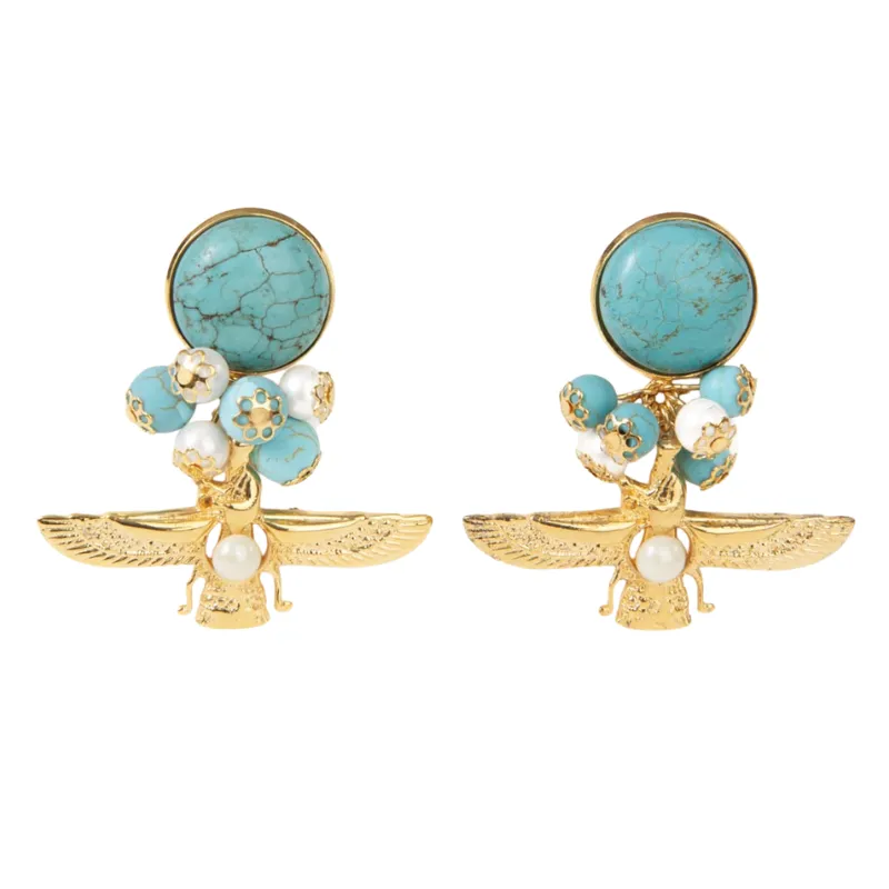 Turquoise Farvahar Statement Earrings: A Fusion of Tradition and Modern Elegance